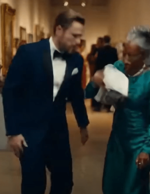Around them, guests stiffened visibly. The woman in black brought one hand to her chest. The man with glasses lowered his drink so fast he nearly spilled it. Across the gallery, curators and trustees who had only moments earlier dismissed the older woman as background now stared with open disbelief.